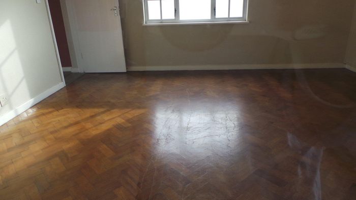 2 bedrooms, 1 bathroom apartment with open kitchen, lounge, and parking in complex.