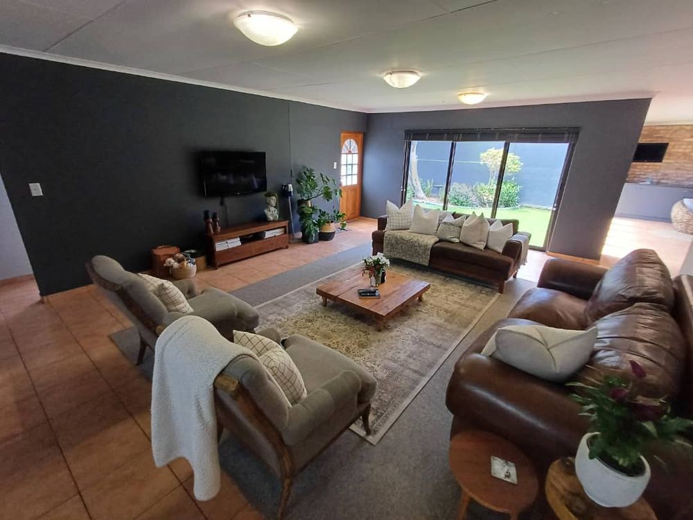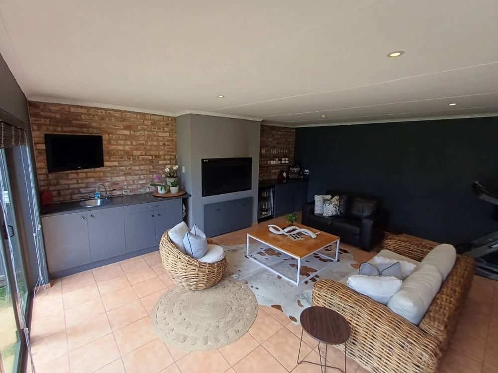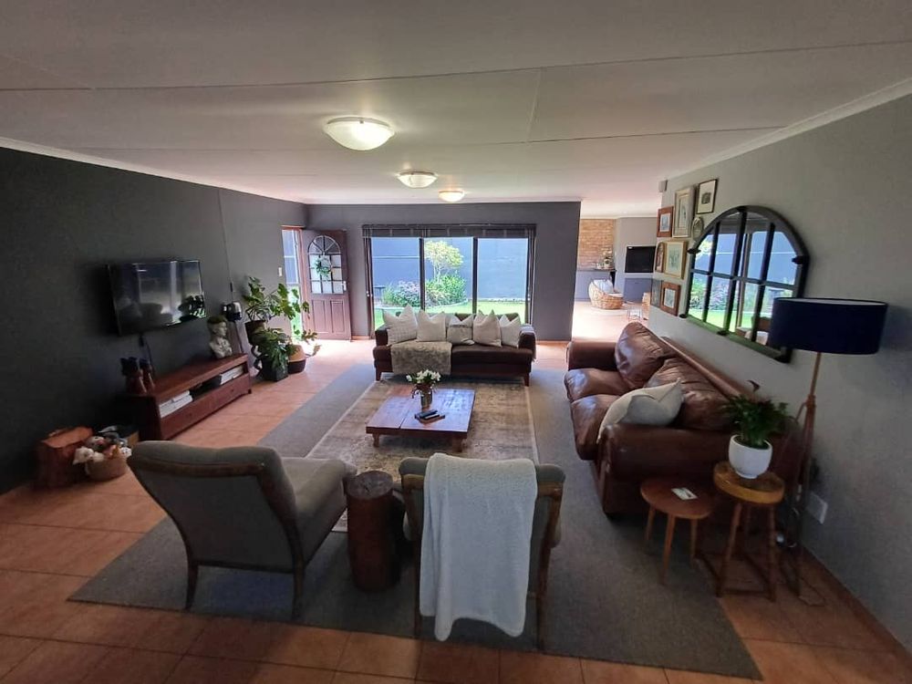 Beautiful home with lush garden offering 3 bedrooms, 3 bathrooms, office, open plan lounge, kitchen with scullery, entertainment area with indoor BBQ, double garage, alarm system, sprinkler system.