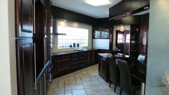 This guesthouse has 6 bedrooms, each with a bathroom. It also includes a reception area, BBQ, swimming pool, double garage, and enclosed parking.