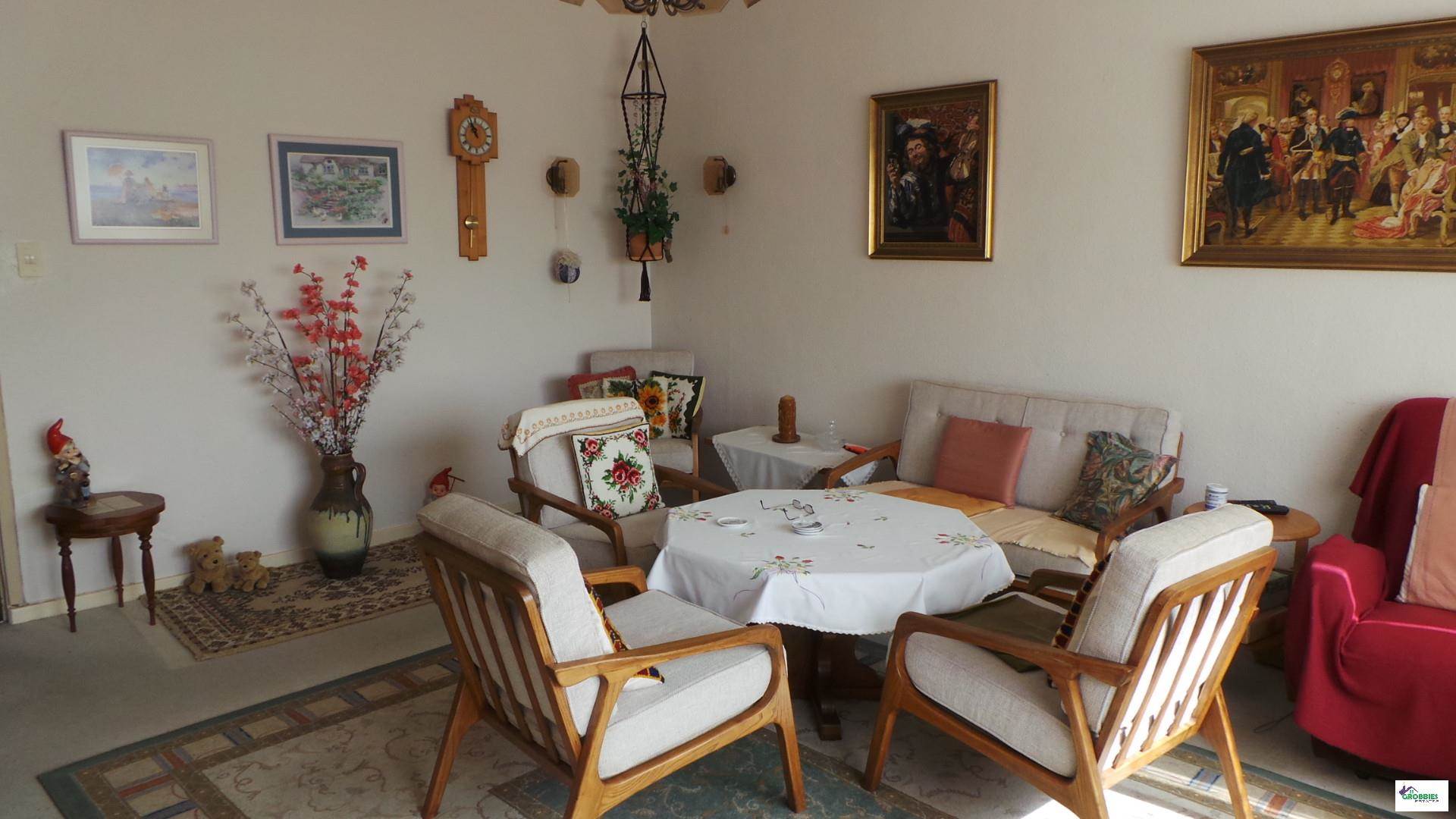 Neat spacious ground floor apartment offering kitchen with fitted kitchen, build in stove and build in scullery, lounge, bedroom with lots of fitted cupboards, bathroom with shower, enclosed balcony plus single garage. Perfect for the young or elderly. Current rental income for these flats is N$ 3 850.00.