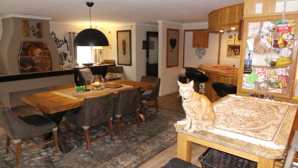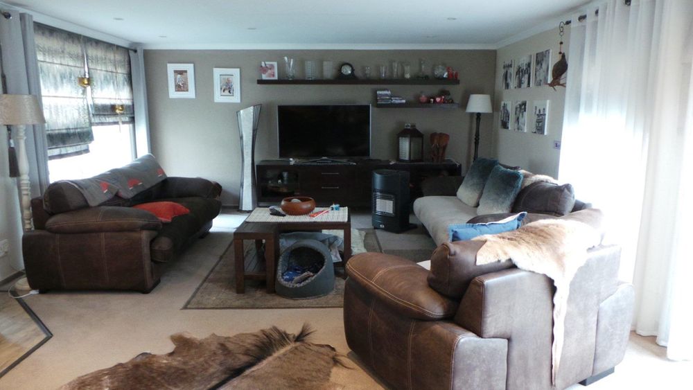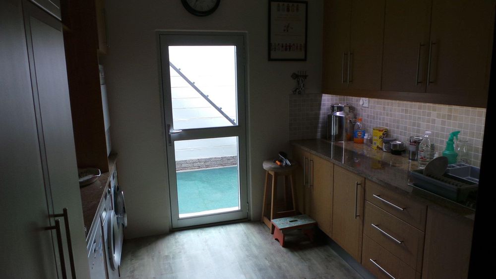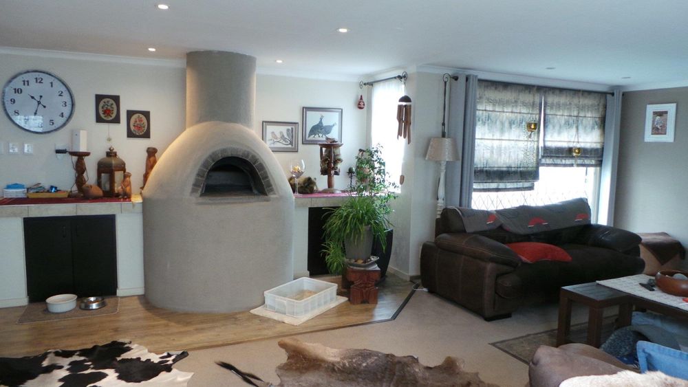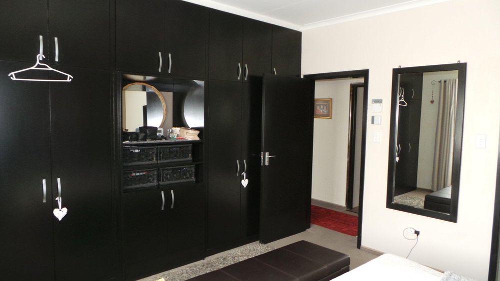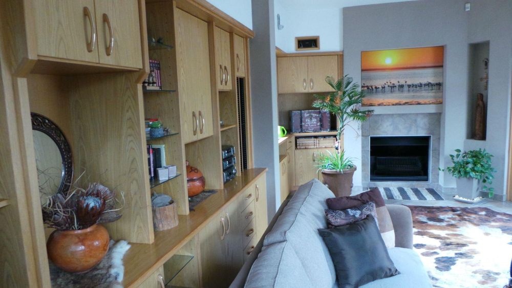 LARGE family home in mint condition situated in 1st Street North Meersig offering 4 bedrooms, 2 bathrooms, entrance hall, large study, guest toilet, private lounge with fireplace, large open plan entertainment area with bar, pizza oven, indoor BBQ, tv room, beautiful wooden kitchen with laundry/scullery area, lots of cupboard space, alarm beams, beautiful maintained garden, interlocked, 9 garages, outside toilet, garden shed.