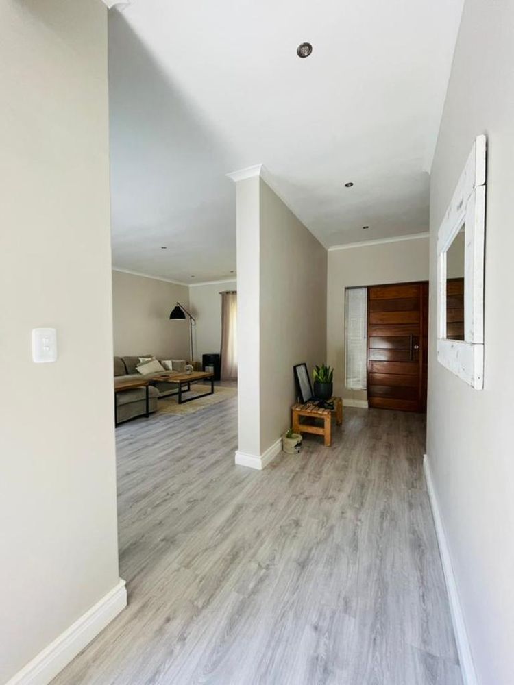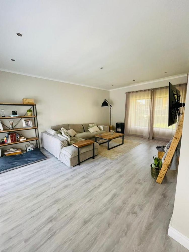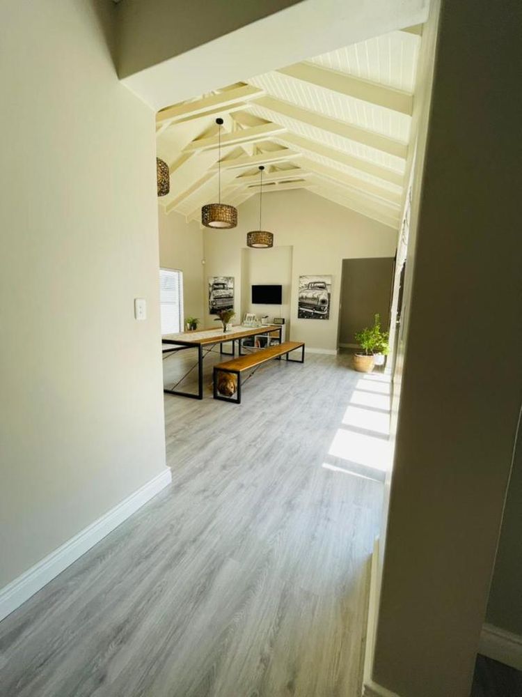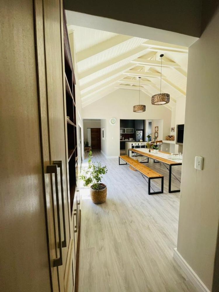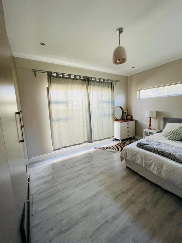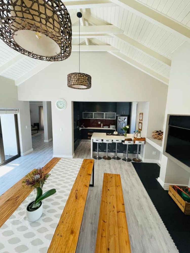 Modern and light 2 bedroom house offering 2 bathrooms, open plan modern kitchen with scullery, double volume lounge with indoor BBQ, dining room, patio with wooden deck and outdoor BBQ, 2 garages.