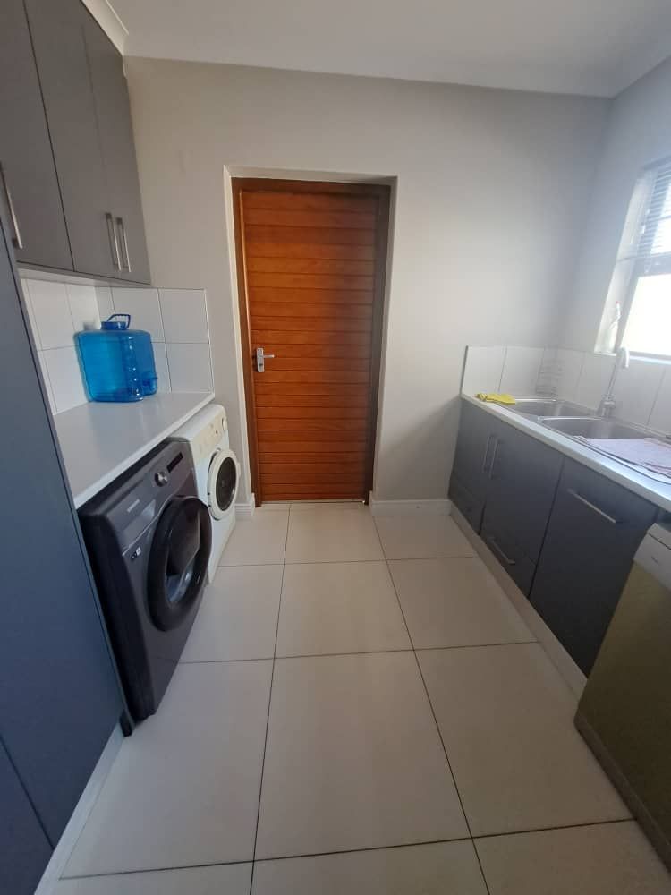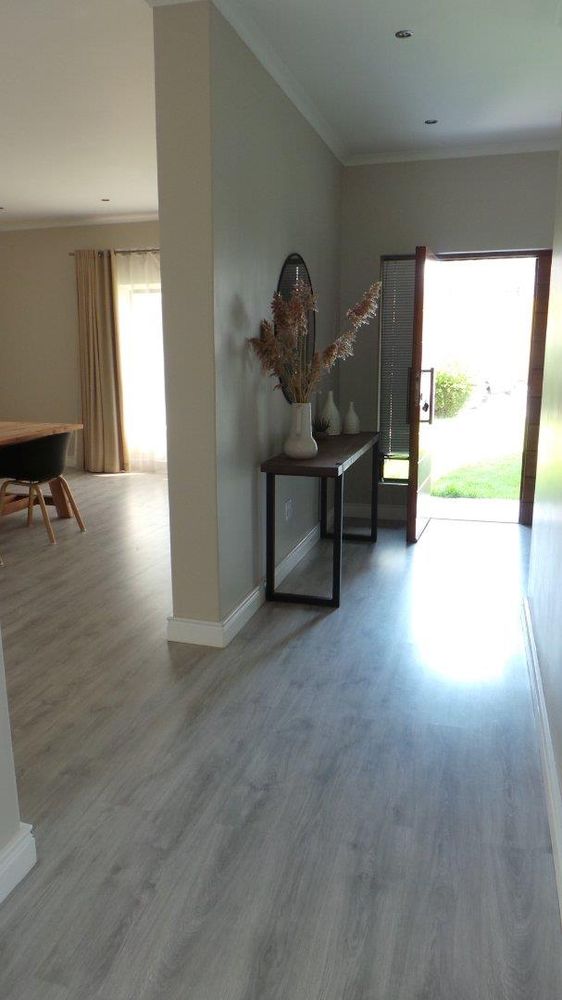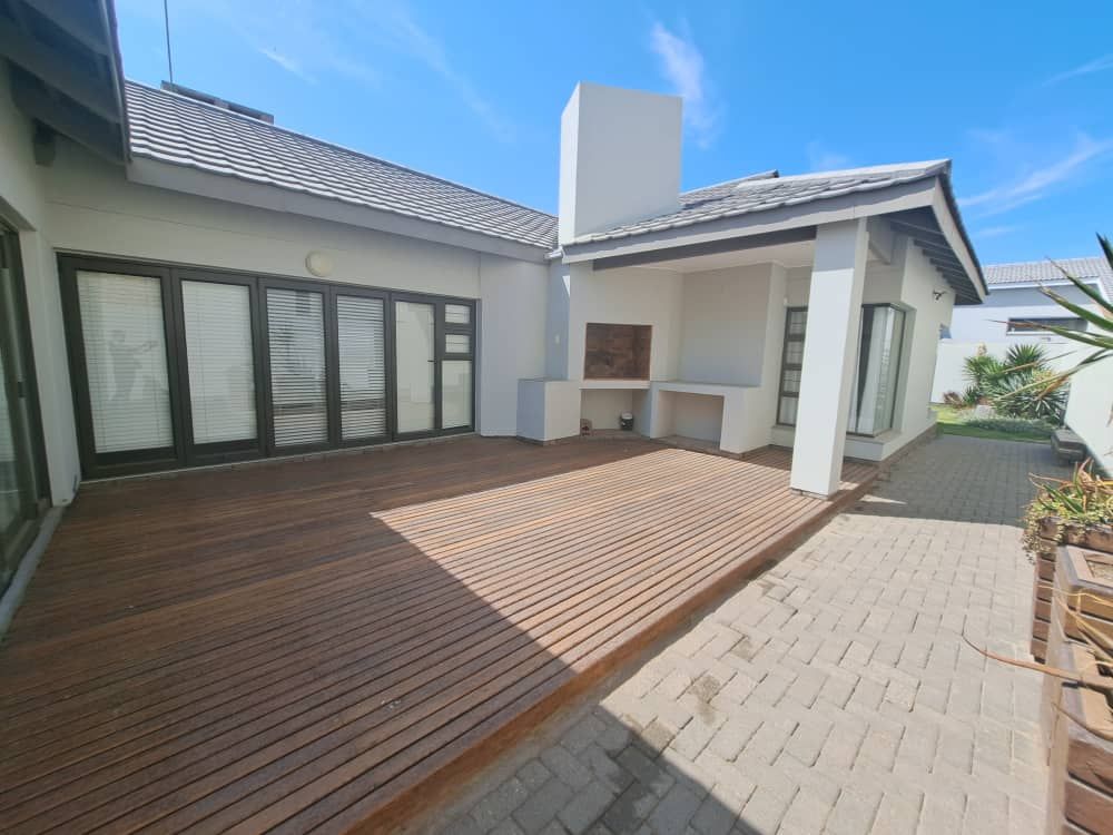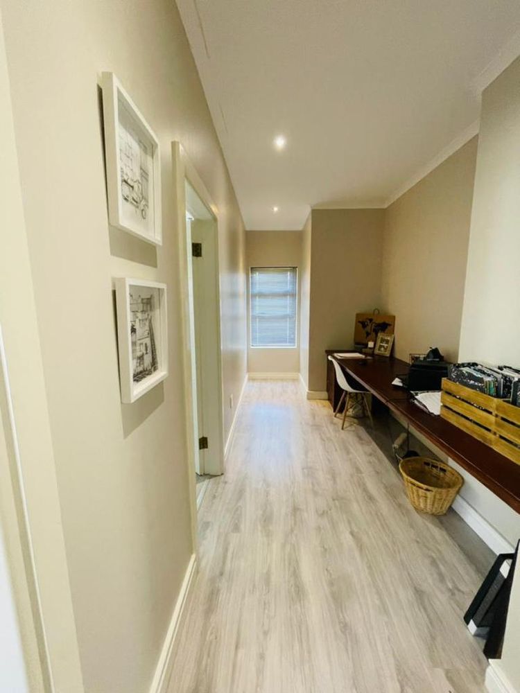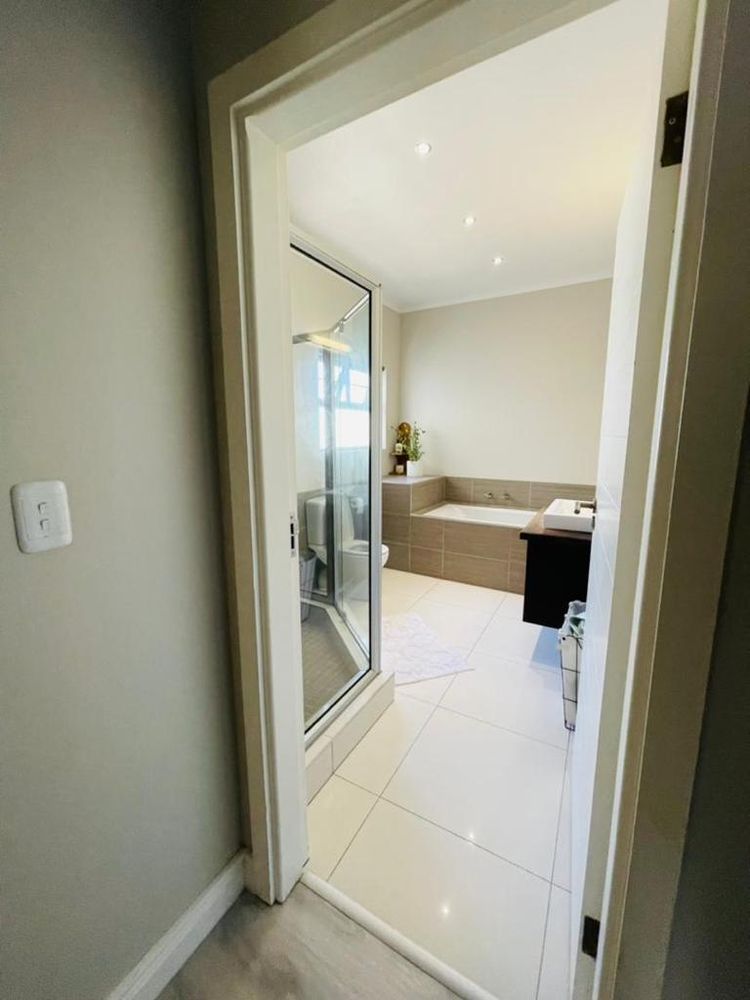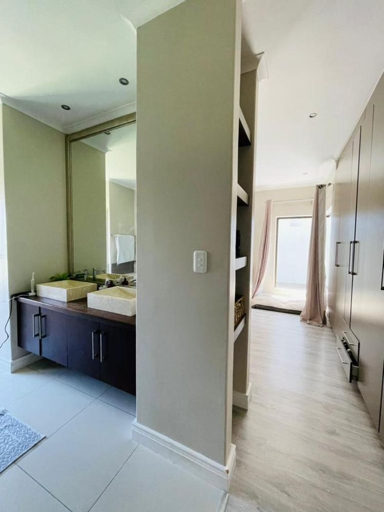 Modern and light 2 bedroom house offering 2 bathrooms, open plan modern kitchen with scullery, double volume lounge with indoor BBQ, dining room, patio with wooden deck and outdoor BBQ, 2 garages.