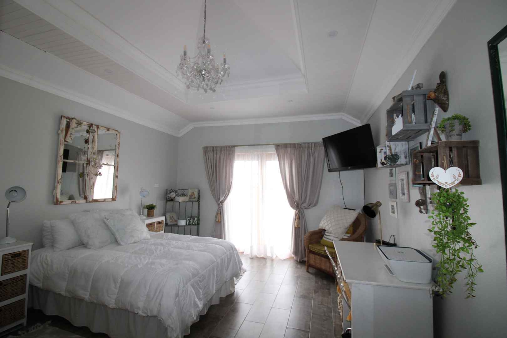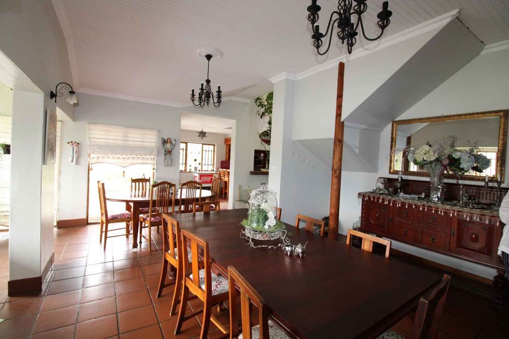 Ground floor – Entrance hall, lounge with fireplace overlooking the lush garden, dining room, tv room, kitchen with scullery and pantry, bar with indoor BBQ, 3 garages (space for 6 cars)