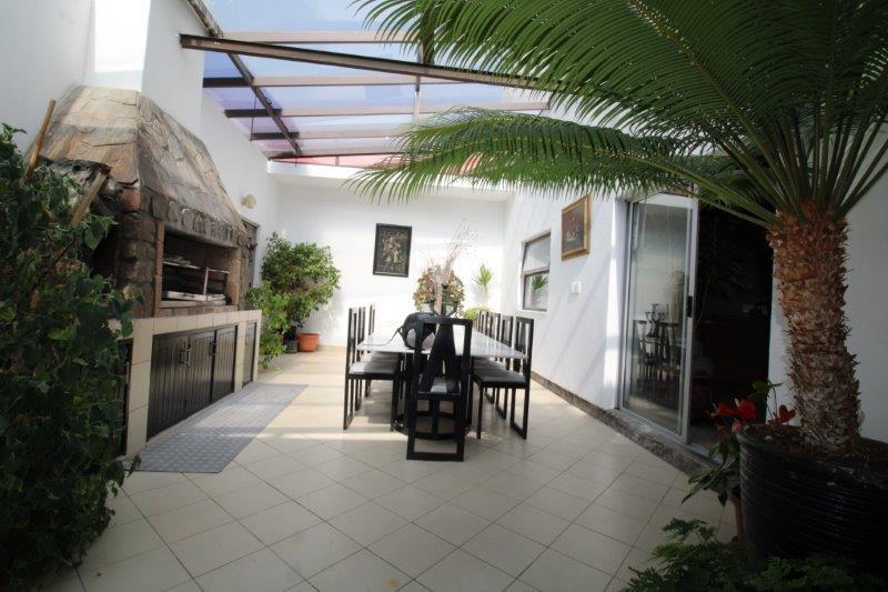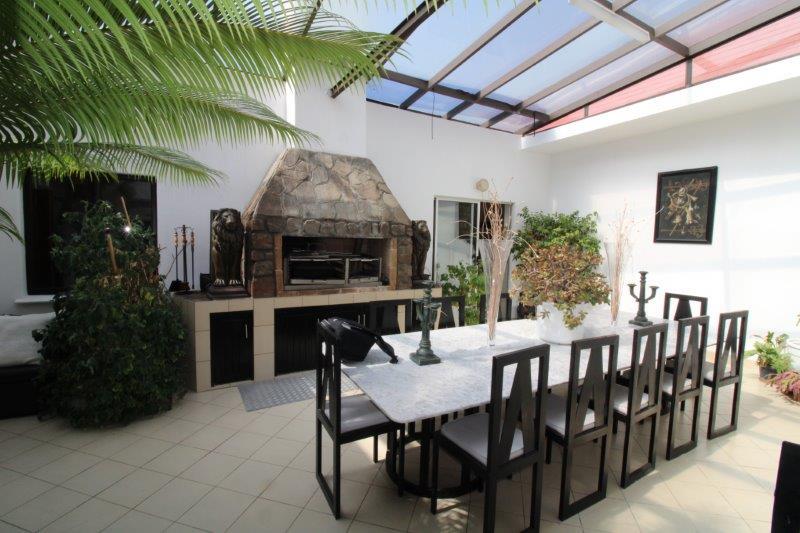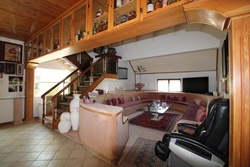 Entrance hall leading to lounge and dining area, kitchen with scullery and laundry area, large entertainment area with bar and tv room, large loft room, guest toilet, store room, total of 4 bedrooms and 4 bathrooms, separate lounge area upstairs with office area, another dining room with indoor BBQ and separate kitchen, separate guest toilet, 4 garages with attic for storage.