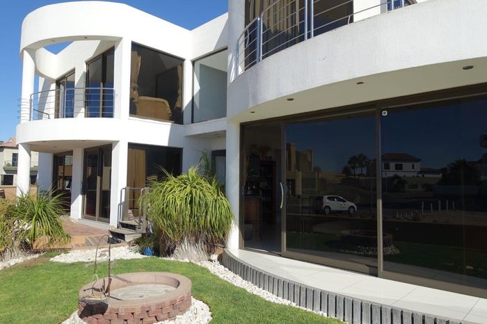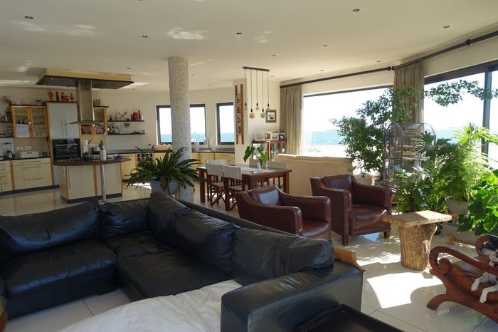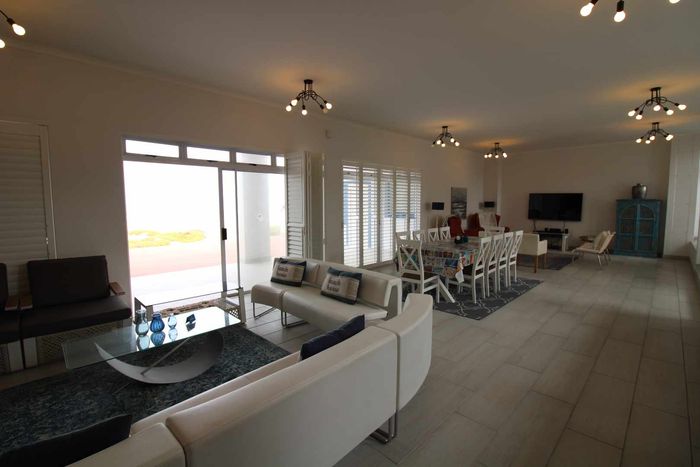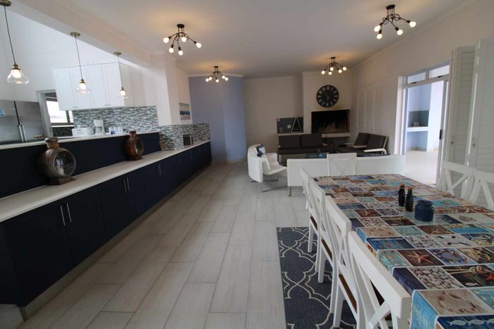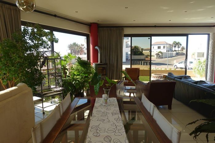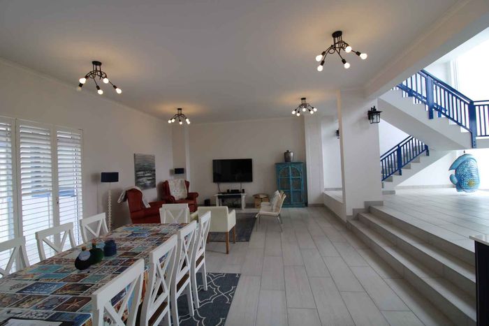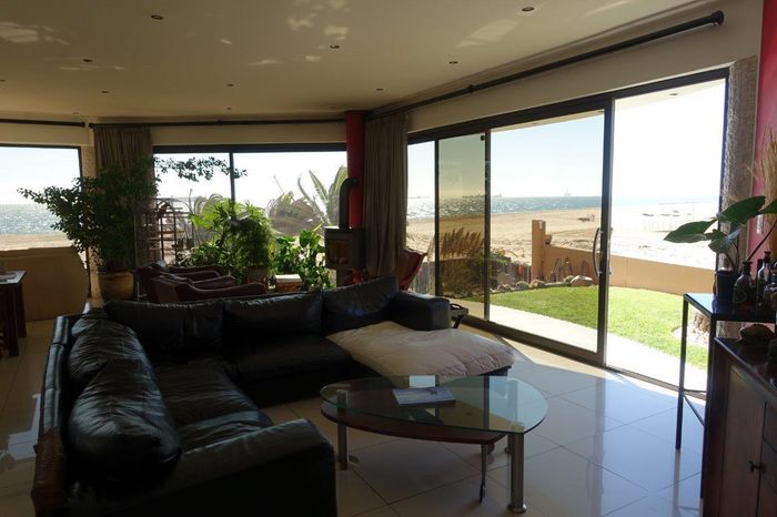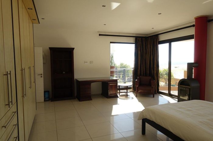 Seafront home with 4 bedrooms, 4 bathrooms, flatlet, garage for 4 cars, and multiple outdoor spaces.
