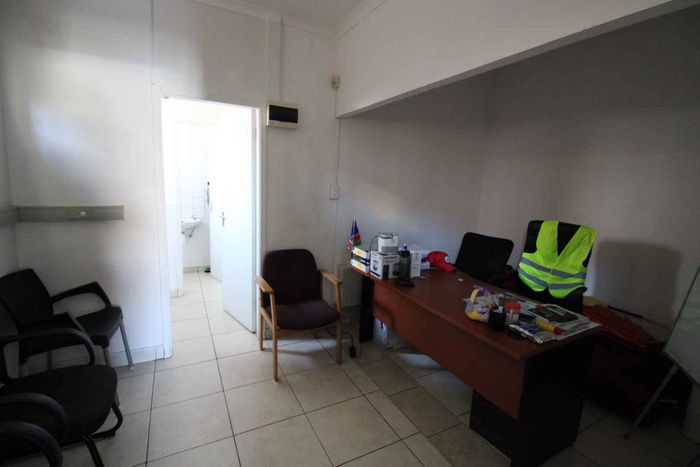 Business property near harbour, featuring offices, reception, ablutions, and paved parking. ERF size: 1122 m². Price: N$ 2,285,000.