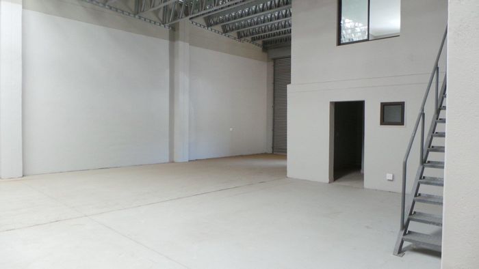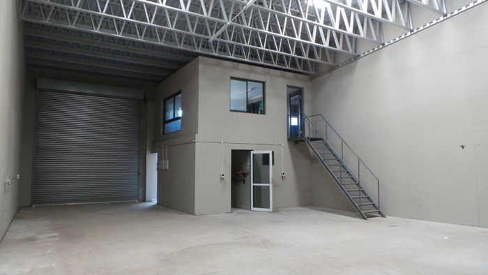 Industrial warehouse of 225m² with kitchen and office, monthly levies N$ 1,640. Two adjoining units also available for sale.
