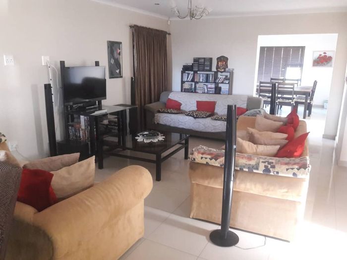 A 3 bedroom home near a lagoon with 2 bathrooms, kitchen, lounge, indoor BBQ, 2 garages, and ample outdoor space. Priced at N$ 1,940,000.