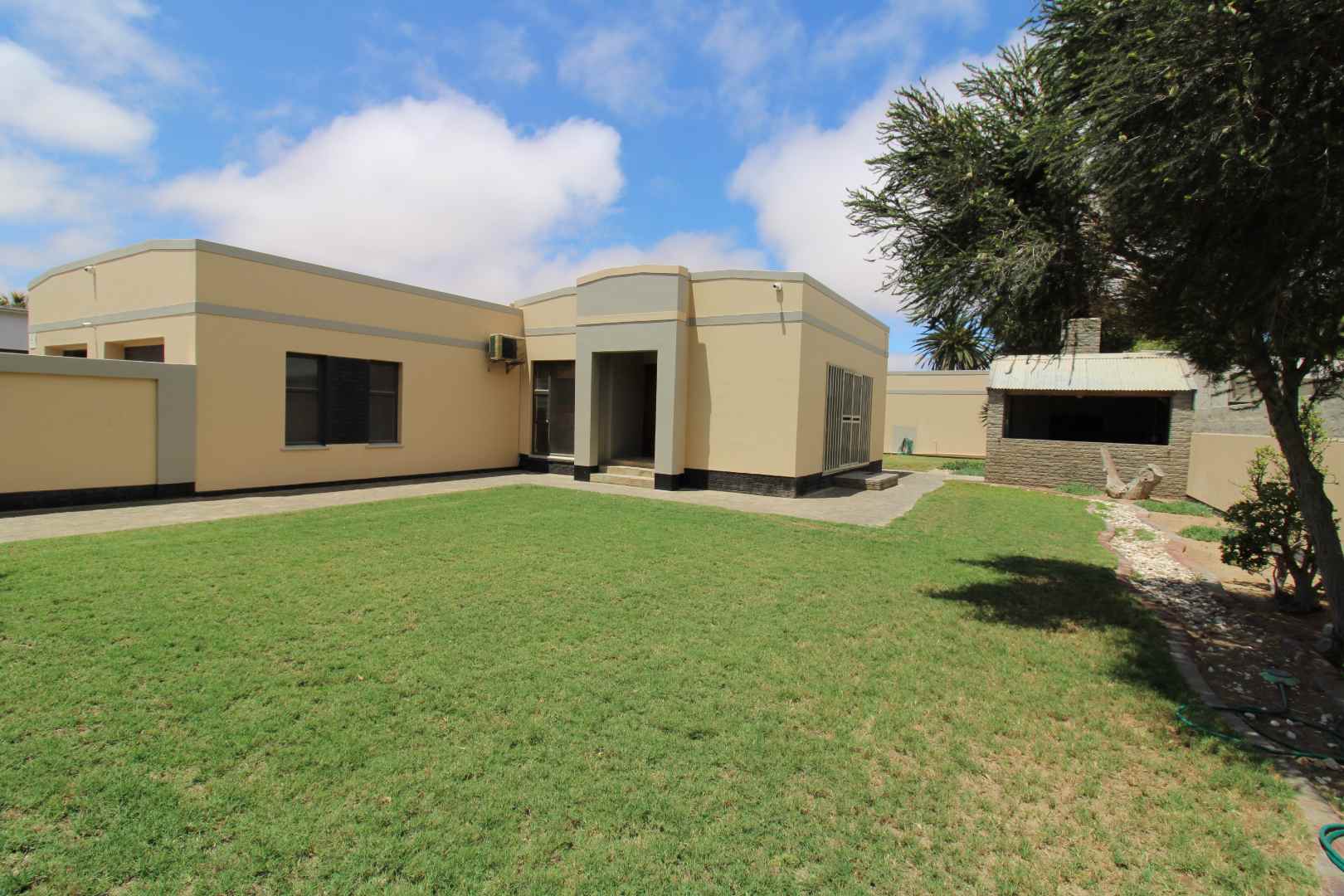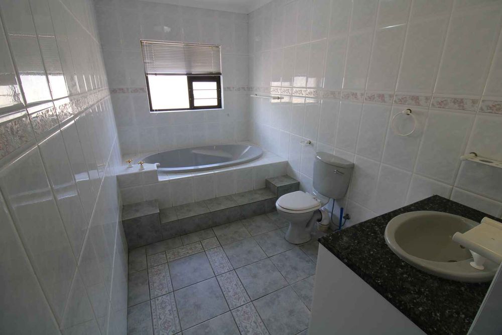 This well located property offers 4 Bedrooms 2 full Bathrooms, spacious Lounge, Dining, ind.BBQ, Kitchen, Scullery, Study, Guest toilet, outside lapa with BBQ, Double garage plus 1 bedroom Flat and Bachelor Flat. Neat front garden, paved driveway and back yard. All enclosed with boundary walls on a 1000m2 plot. Registered in CC