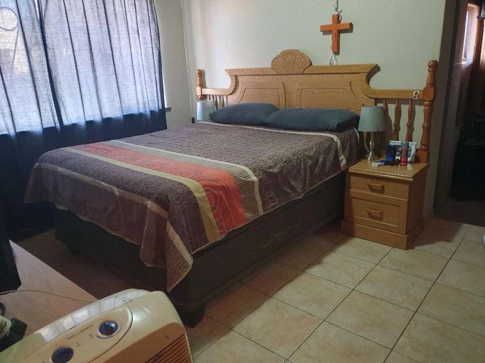 A starter home with 2 bedrooms, 1 bathroom, lounge, kitchen, enclosed patio, 2 garages on a 1025m2 enclosed plot.
