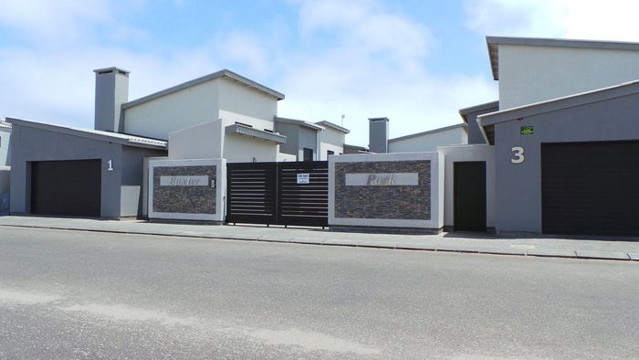A complex of 5 units near a lagoon, featuring 3 bedrooms, 2 bathrooms, open plan lounge, kitchen, indoor BBQ, and 2 garages. Priced at N$1,680,000.