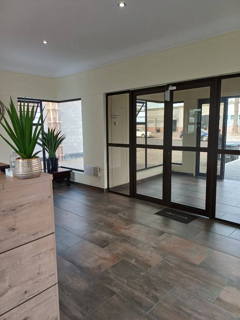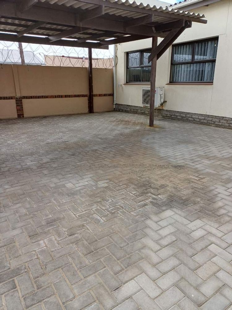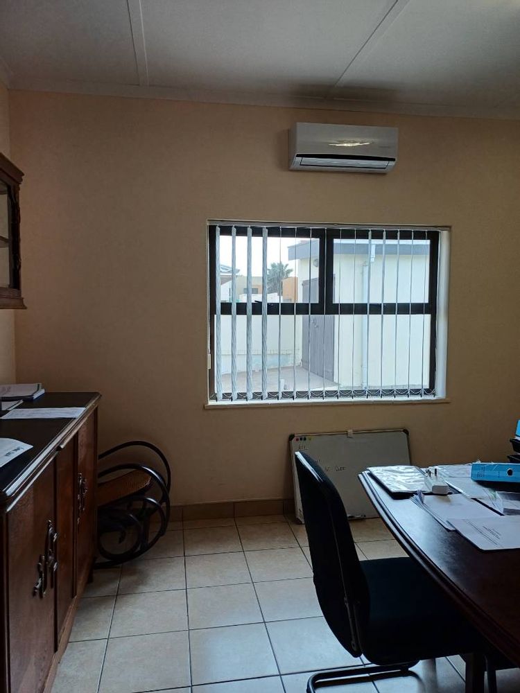 This Modern office building offers 6 Offices, reception, open plan office, 2 kitchenettes, safe and server room plus ablution and outside building with bathroom and single garage. Paved yard and all enclosed with boundary wall. Registered in CC